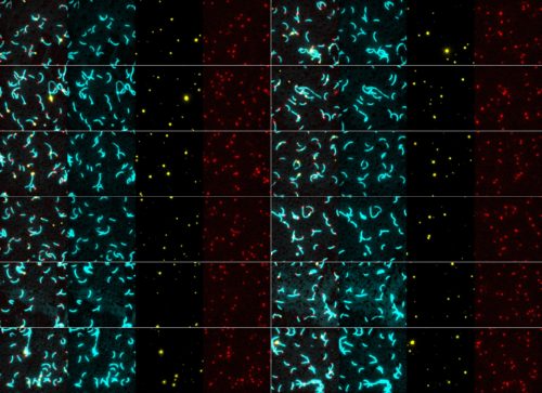 Fluorescence image of thousands of Caulobacter crescentus cells in a biofilm (Berne)