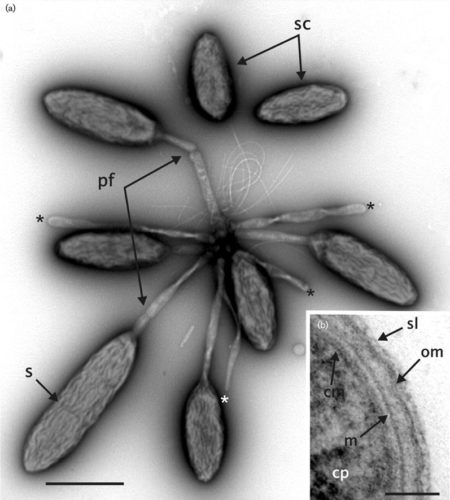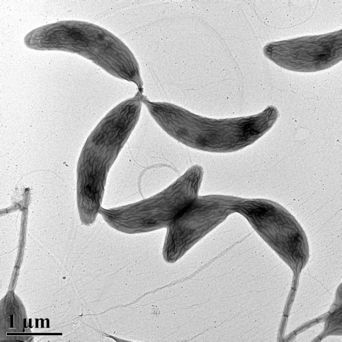 Transmission electron micrograph of Caulobacter cresentus (Berne)