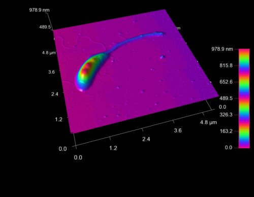 Caulobacter crescentus cell with long stalk viewed with atomic force microscopy (Berne)